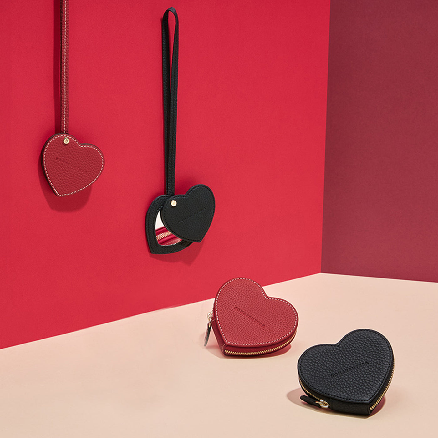 まず一つ目が、新作のボナベンチュラ「ハートコインケース シュリンクレザー」です。片手にすっぽりおさまるサイズ感で、コインだと最大20枚入ります。ピアスやネックレスなど、細々したアクセサリーもすっぽりと収納できます。