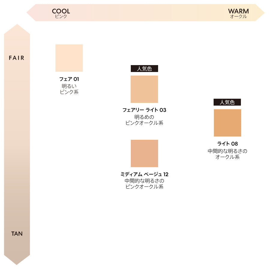 ブルベの方が一番使いやすいのはフェアの色みだと思われます。