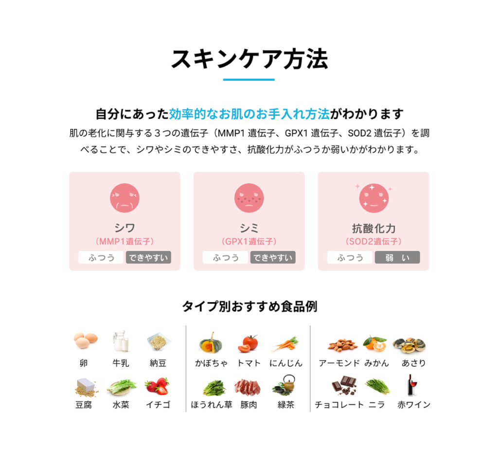 効果的に効率良く、ダイエットしたい・肌をきれいにしたい・ずっと健康でいたい筆者にとっては、遺伝子情報を知れたことは財産となり、総じて受けて良かったです^^